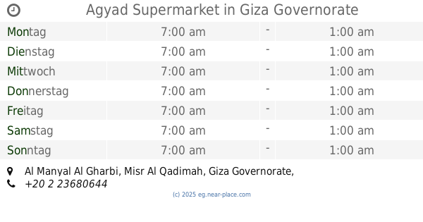 | Dienstag | 24 stunden geöffnet | |||||